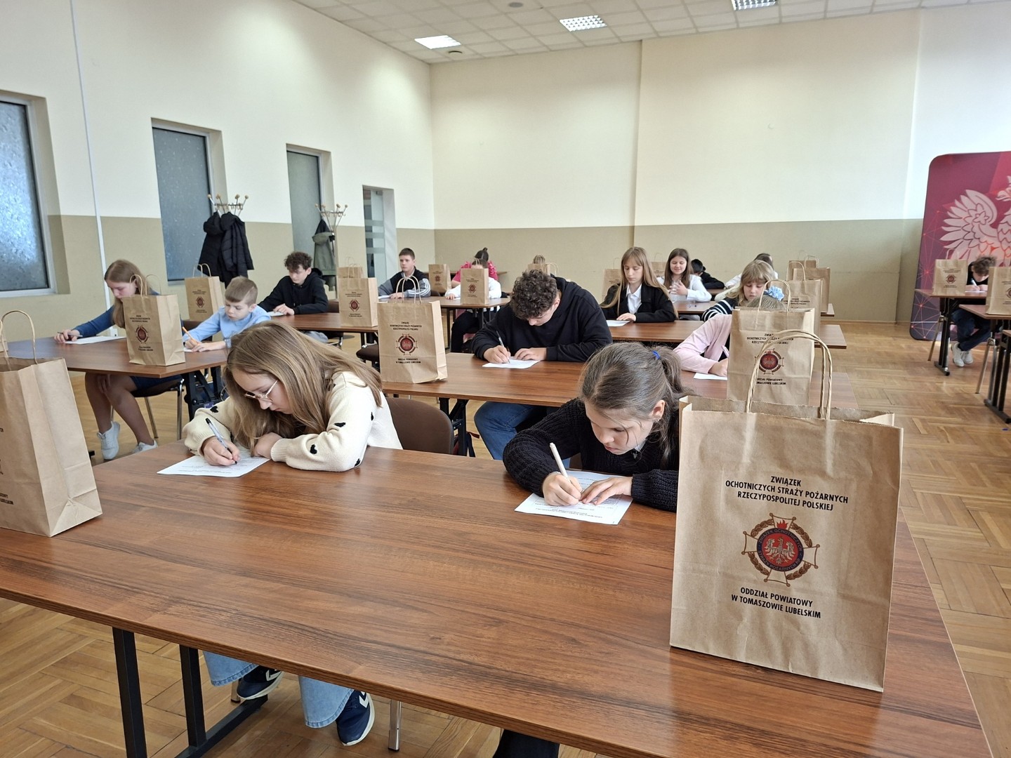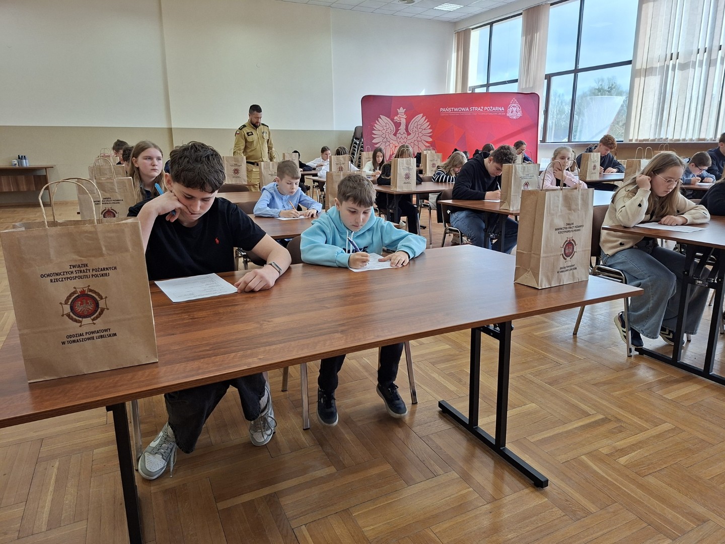 W dniu 10 kwietnia 2026 r. w siedzibie Komendy Powiatowej PSP w Tomaszowie Lubelskim przeprowadzono Eliminacje Powiatowe OTWP z udziałem 29 uczestników – zwycięzców Eliminacji Gminnych. W imieniu organizatorów, uczestników powitali: Komendant Powiatowy PSP bryg. Paweł Chromiec oraz Prezes Zarządu Oddziału Powiatowego ZOSP RP dh Stanisław Kielech. Jury eliminacji w składzie: kpt. Jakub Stępora, str. Anna Skroban i asp. sztab. Krzysztof Gmoch, po sprawdzeniu prac pisemnych i przeprowadzeniu rozgrywki finałowej, wyłoniło zwycięzców w poszczególnych grupach wiekowych.
